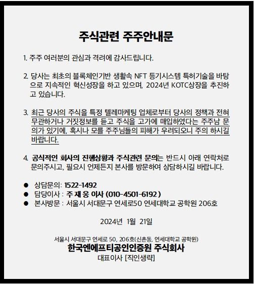 4. 공식적인 회사의 정책이나 진행상황 및 주식관련 문의는 반드시 아래 연락처로 문의주시고,